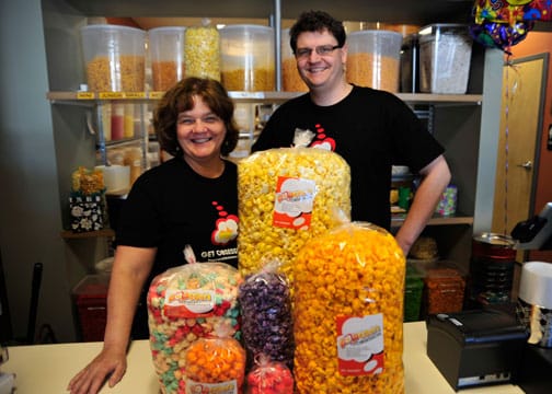The mother and son team owns and operates Popcorn Obsession, the new gourmet popcorn store between Ming Village and the Painters Crossing Dry Cleaners in the Painters Crossing shopping center.