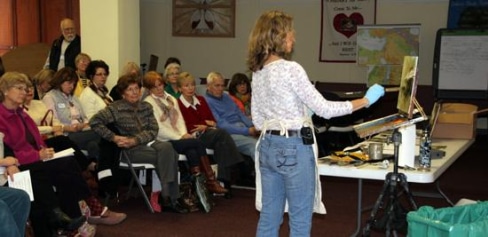 The Longwood Plein Air event was only one of fifteen different art shows that DVAL organized last year. It is not easy to maintain a membership roster, offer a variety of art show and art workshop opportunities, manage publicity, prizes, newsletters and run monthly meetings and demonstrations. How do they do it? I went to my first meeting to discover the secret of their success.