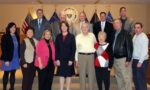 (Top photo: Delaware County Council recognized the 2016 honorees of the Delaware County Women’s Commission in advance of their March 16 awards breakfast. Shown at the March 2 Council meeting are, from left, Kelly Colvin, chair of the Women’s Commission, Women of Achievement honorees Josephine “Gigi” Laird and Carol Miller, Council Vice Chair Colleen Morrone, and family members of Hall of Fame inductee Margaret “Mickey” Murdoch including husband Harry, daughter Eileen and her husband, Jim, grandson Michael and, back row, Council members Mike Culp, Chairman Mario J. Civera Jr., John McBlain, Dave White and Jim Maloney.)