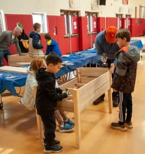 Volunteers still made get-well cards for child patients during the day of service, but also for patients at Pocopson Home. They also made raised flower beds for Pocopson Home. But also, this year, students made surgical caps for special needs kids who need operations.