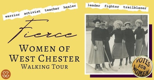 • In honor of Women’s History Month, the Chester County History Center is offering a walking tour Fierce: Women of West Chester on Wednesday, Thursday, and Friday, March 27-28, from 6-7:30 p.m. This 1 ½ hour walking tour will visit the homes and businesses of the women who shaped West Chester from colonial times to the present. The tour covers approximately 1.5 miles and lasts 90 minutes. The tour is entirely outdoors; sidewalks and terrain may be uneven. The event is rain or shine, so please dress for the weather. Service dogs are welcome; pets are not permitted on our public walking tours. The cost is $15.00 per person (20 percent discount with member code). Purchase tickets here.
