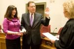 Judge Linda Cartisano conducted the swearing in ceremony during the Jan. 6 organization meeting. Murphy’s wife, Anna Marie, held the bible and his daughters were in the audience as Murphy swore to uphold and protect the US and state constitutions.( See photo.)  Also sworn in was Valerie Hoxter as township tax collector.