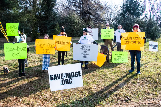 The group Save-Ridge.Org opposes the widening of Ridge Road to six lanes and the inclusion of a gas station in the proposed development.